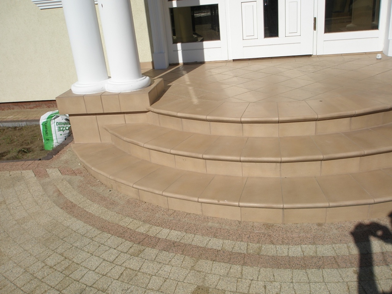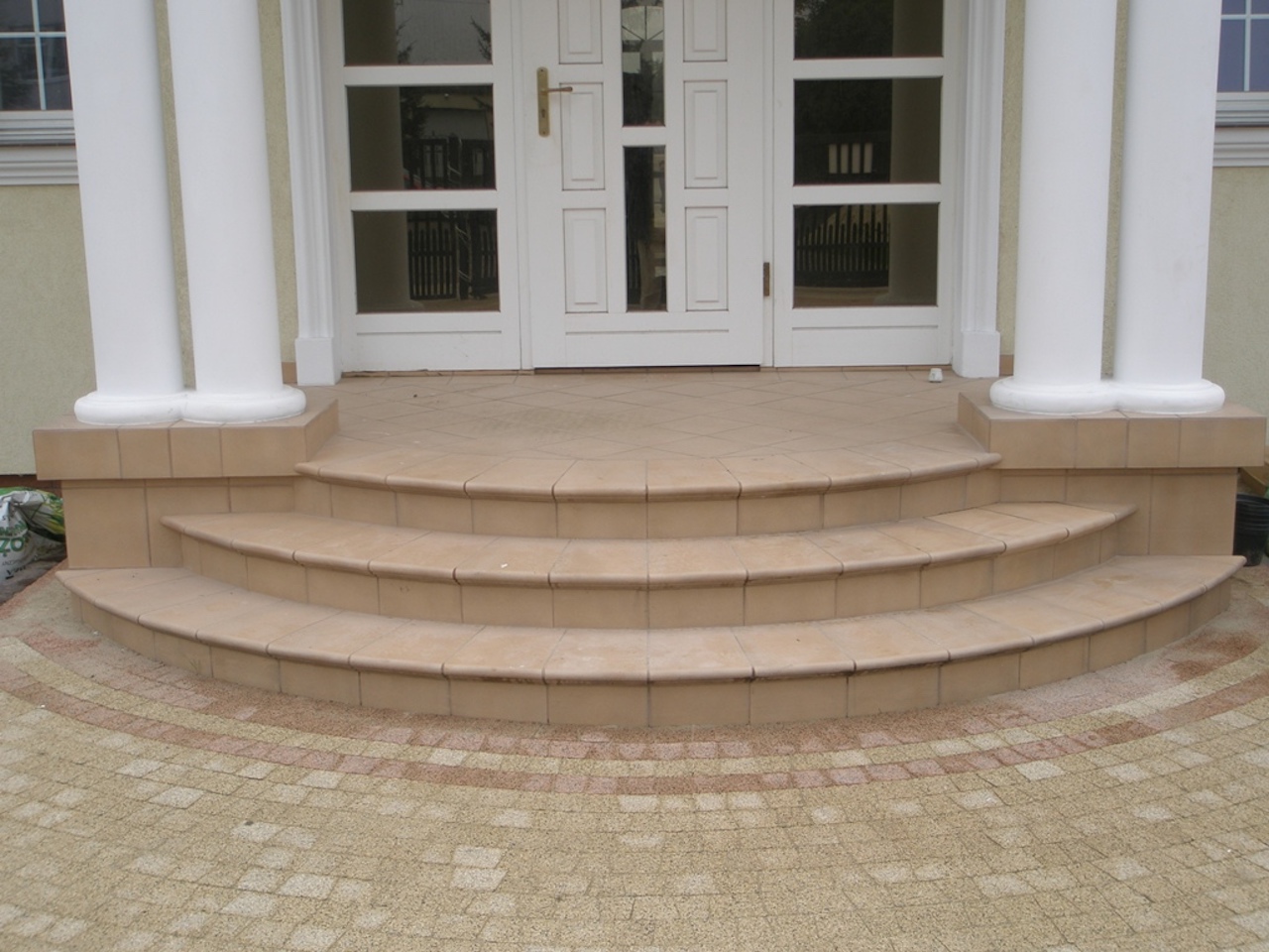 Schody wejściowe, półokrągłe.